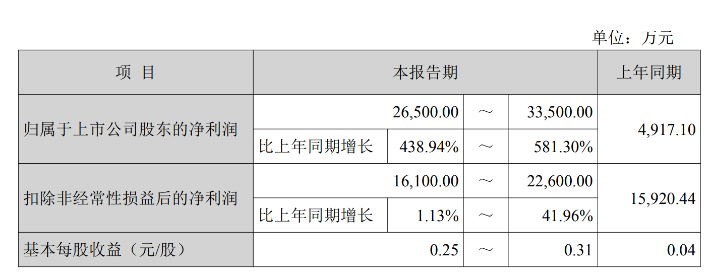 海联金汇,这个股票2025年净利润增长429%到581%,净利润达到2.65亿到3.35亿元。
