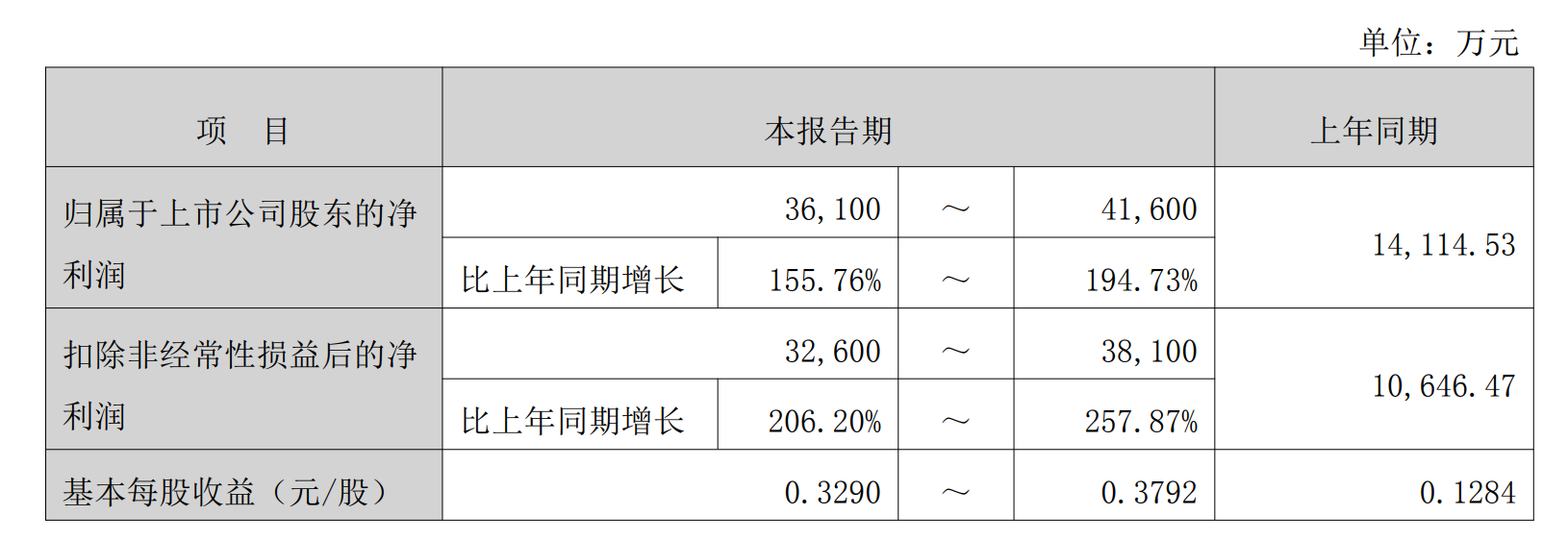 12. 宁波东力,净利增长325%到347%,净利润1.95亿到2.05亿