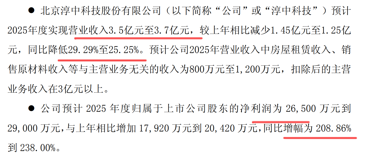淳中科技,这个股票2025年收入下滑29%,降低到3.5亿,净利润达到2.65亿,增长209%。