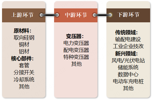 电力变压器用于输电系统的高压变换,承担区域电网的电能传输与枢纽变电站的电压转换,市场集中度高,客户主要是国家电网、南方电网及大型发电集团。主要企业包括特变电工、中国西电、保变电气、思源电气等;