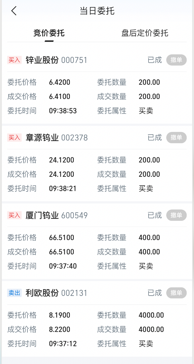 【D账户全天的交易截图】