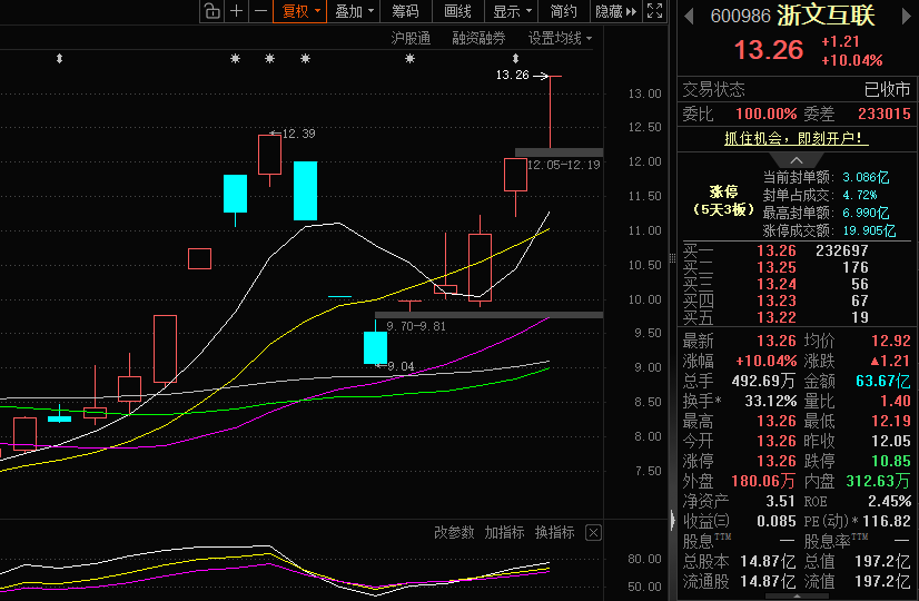 操作上昨日强势涨停而且封单稳固,高换手伴随筹码充分交换,说明有新紫金强势入场承接,叠加 AI 营销、数字资产的热门题材热度,只要今天传媒 / AI 板块延续强势,股价有望继续冲高。