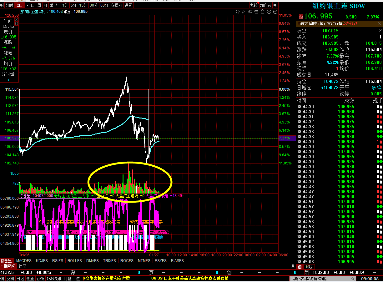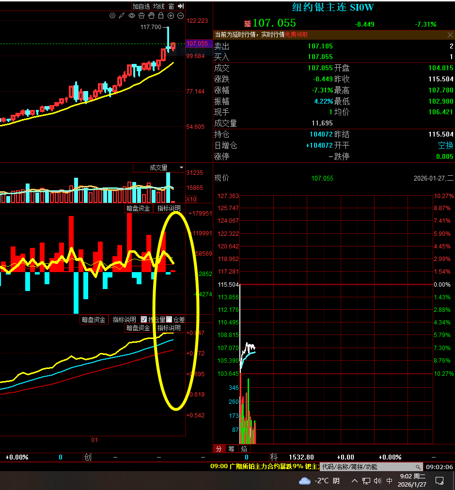 0127星期二 正在交易的纽约银 盘中资金动向图