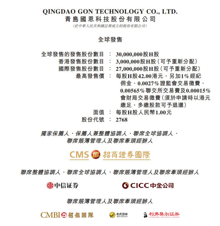 【国恩科技:拟全球发售3000万股H股,发售价不超42港元】1月27日早间,国恩科技在港交所公告,公司拟全球发售3000万股H股,香港发售股份300万股H股,国际发售股份2700万股H股;最高发售价为每股42港元;预期股份将于2026年2月4日开始在香港联交所买卖。