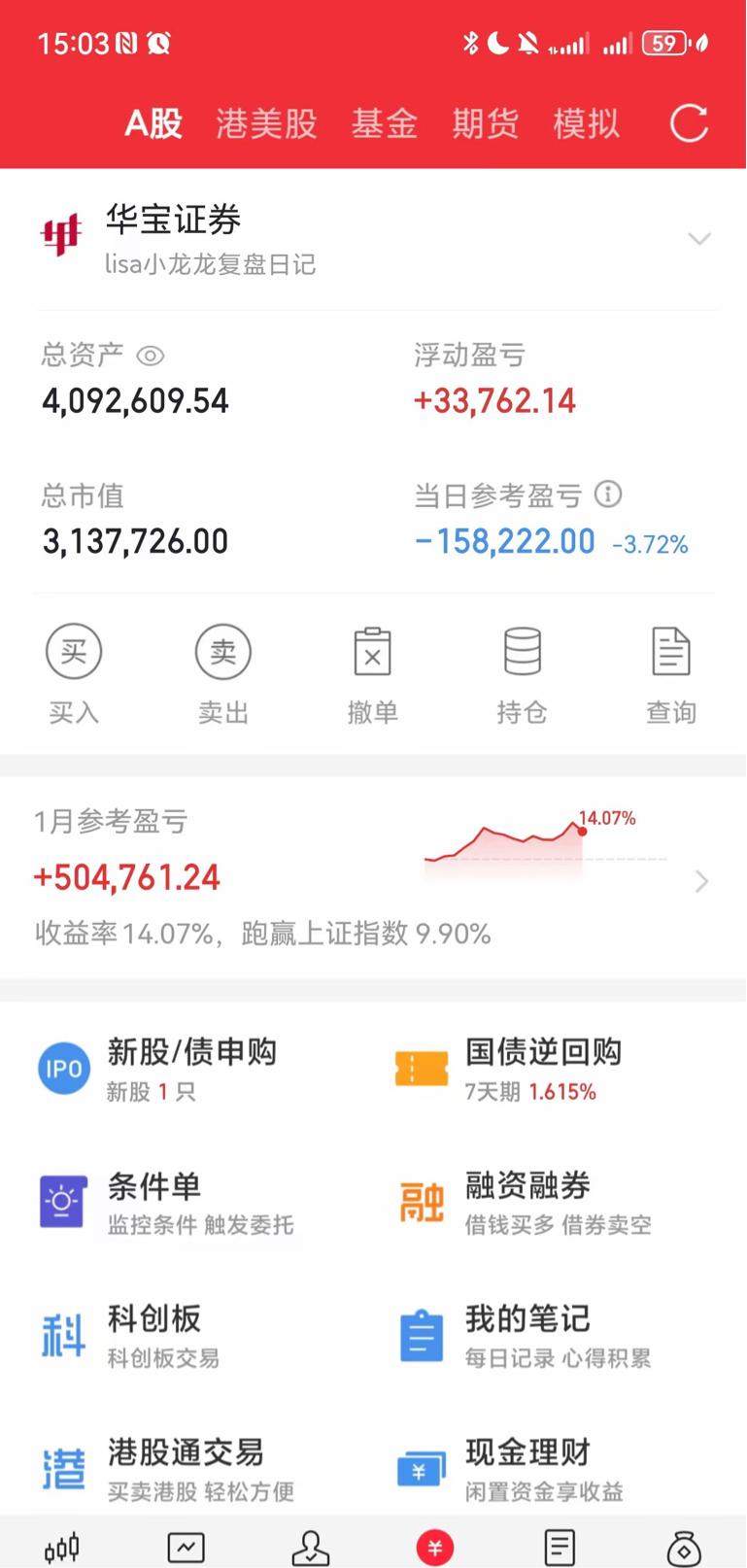 说到底是自己格局商业航天太上头,认准九鼎就够了,手里的票砸下来也没及时卖,复盘全是明牌。