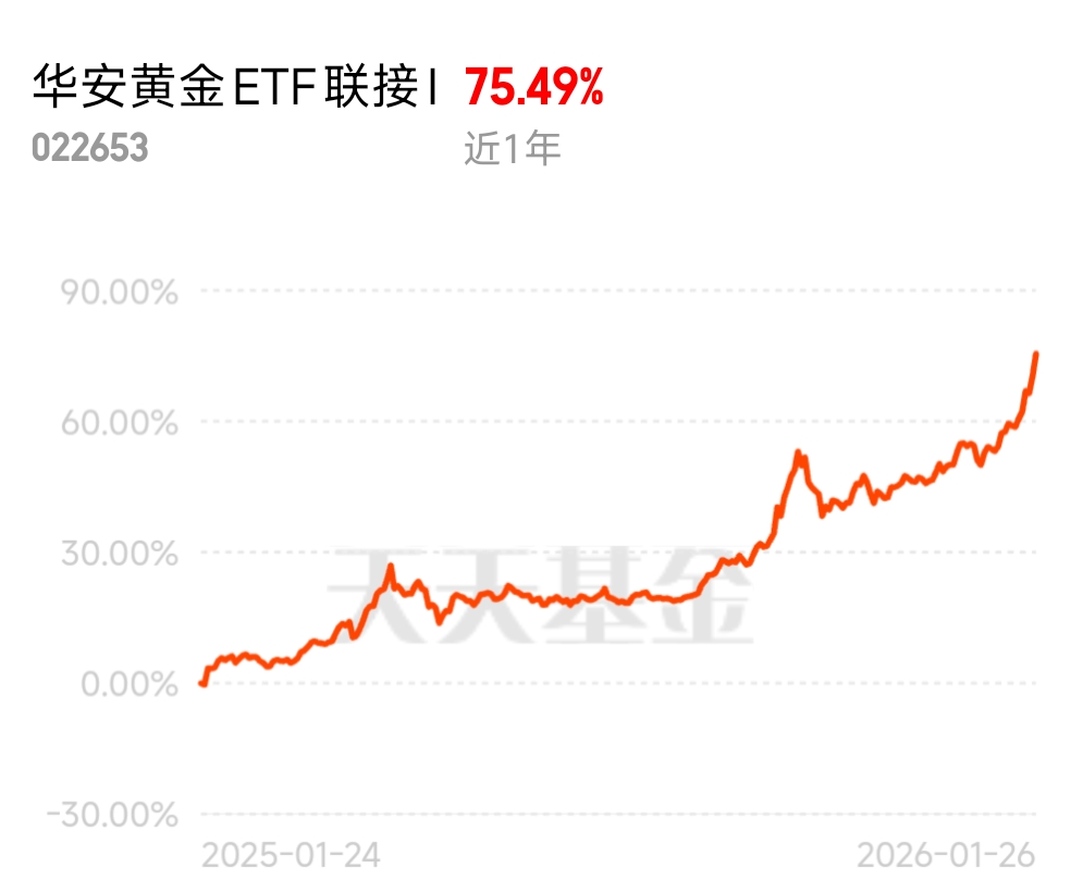 贵金属行情火热,$华安黄金ETF联接I$今日涨3.00%,年内收益75.49%,