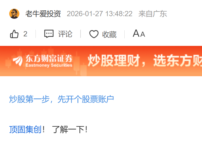 温馨提示: 1.根据《证券法》规定,禁止编造、传播虚假信息或者误导性信息,扰乱证券市场;2.用户在本社区发表的所有资料、言论等仅代表个人观点,与本网站立场无关,不对您构成任何投资建议。用户应基于自己的独立判断,自行决定证券投资并承担相应风险。《东方财富社区管理规定》