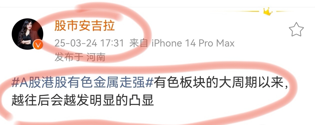 安吉拉应该是23年开始就隔三差五提到有色,金属,资源,原材料这些板块;可以说是市场一片冷寂的时候是我们最早研判的这些板块,众人只看到当下的火热,却说不出个后续;但这些,安吉拉在两三年前都已看的清楚,研判的清楚,后续也想整理出视频来