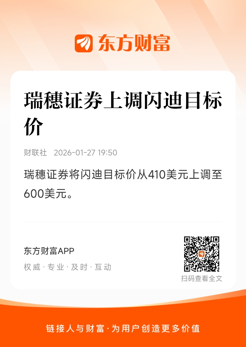瑞穗证券将闪迪目标价从410美元上调至600美元。