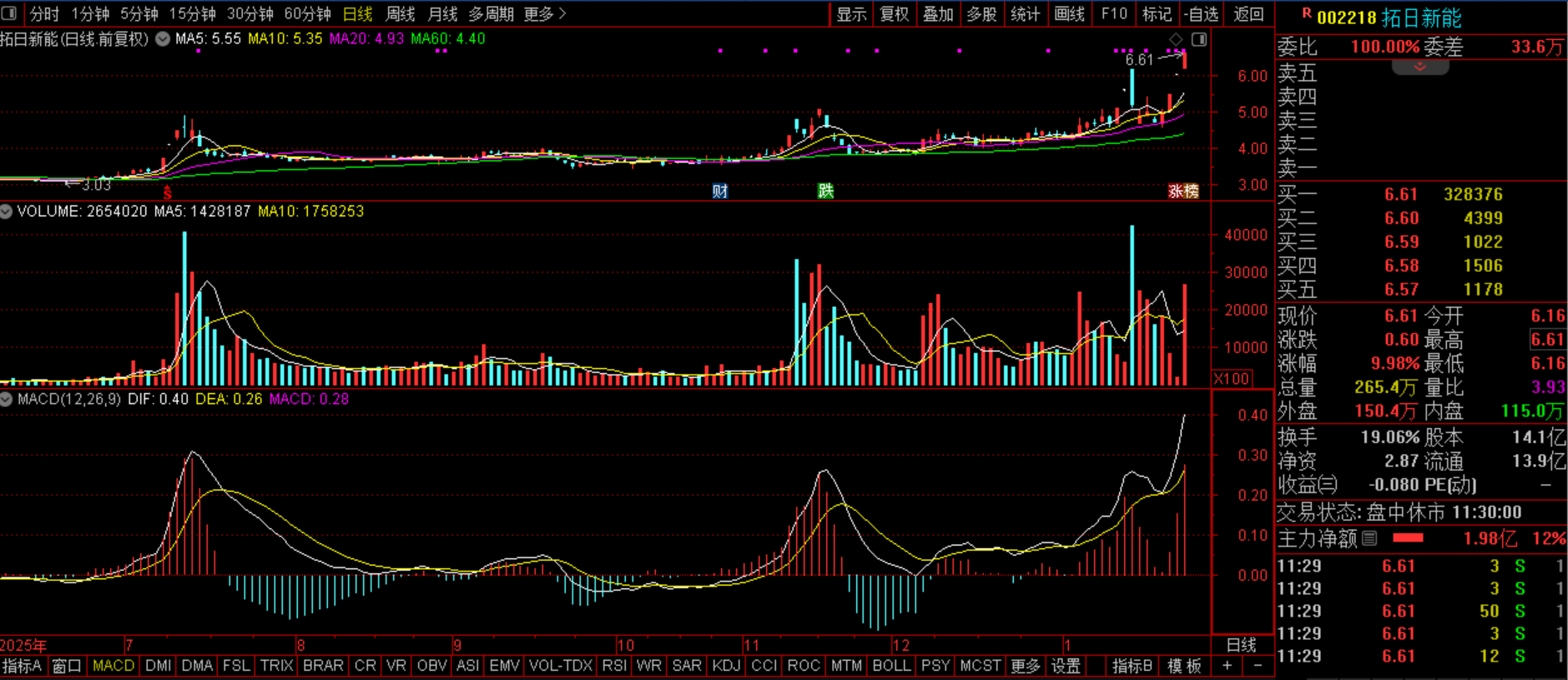 $拓日新能(SZ002218)$拓日新能(SZ002218):自持电站+钙钛矿+太空光伏+商业航天+芯片。昨日此股开盘就快速拉涨封板,复盘时说了这是典型的突破与趋势的强化,料后市新的上涨空间或开启。预计今日此股有望继续高走,由于7.20--9.00区间是该股的强阻力区,因此这个区间走势可能较为震荡,不过只要稳定在6.16上的话,依旧是机遇多于风险,值得研究探索。
