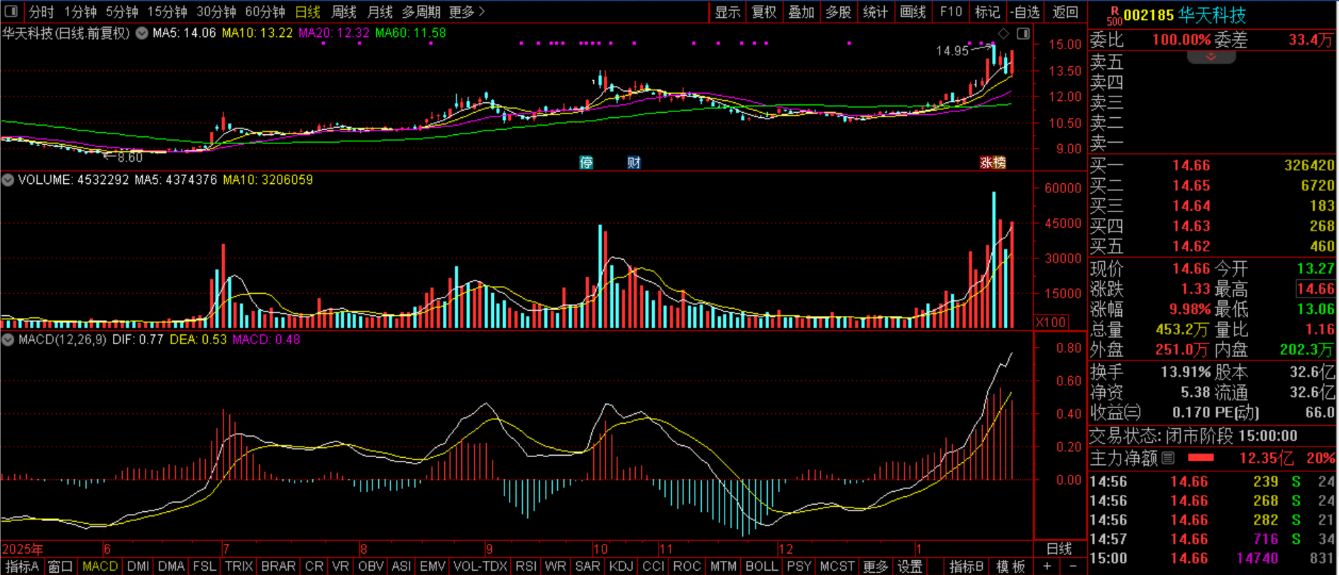 $华天科技(SZ002185)$华天科技(SZ002185):先进封装+CPO概念+华为海思概念+年报增长+收购华羿微电+功率器件+封测龙头+Chiplet。该股自从2026年一月中旬开始就走出了上涨趋势,不过期间走势较为纠结,这跟市场异动有关,本来上周三该股已经突破即将大幅拉涨,可惜的是接下来是放巨量超调,但之后几天走势还是稳定,无视大盘走势,继续稳定运行,这是后市要加速上涨的表征,昨日该股继续拉涨封板,量能温和放大, 笔者以为上涨趋势恢复,后市快涨甚至新一轮涨势有望开启。预计今日该股有望继续走高,只要稳定在14.95上方的话,该股仍处突破态势,后市继续走涨无忧,盘中分歧走水的话,当然值得研究。不过能否走出单边强势行情还得紫金流入以及大势配合。