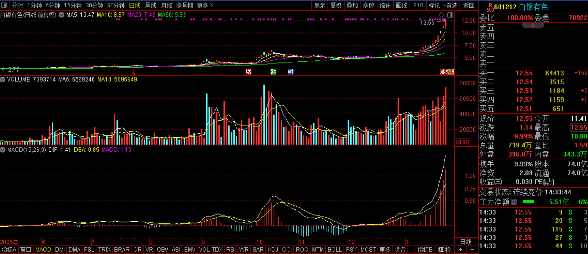 $白银有色(SH601212)$白银有色(SZ601212):黄金+白银+锂电材料+铜铅锌+甘肃国企。昨日该股早盘强震探底,其后快速拉涨封板,并且盘中多次炸板,尾市才最终封住,量能继续放大,一般这种走势都是短期超调需求的表征,另外就是该股短期6连板,上涨速度过快,有异动风险,所以笔者以为今日此股或继续震荡探底,甚至强势分歧整理,如真这样的话,还是偏机遇的,当然这个时候仓位不能弄的太多,如果能出现连续2-3个超调的话就非常完美。机遇昨日的分析,笔者坚定看涨该股后市估值预期18.00观点不变。