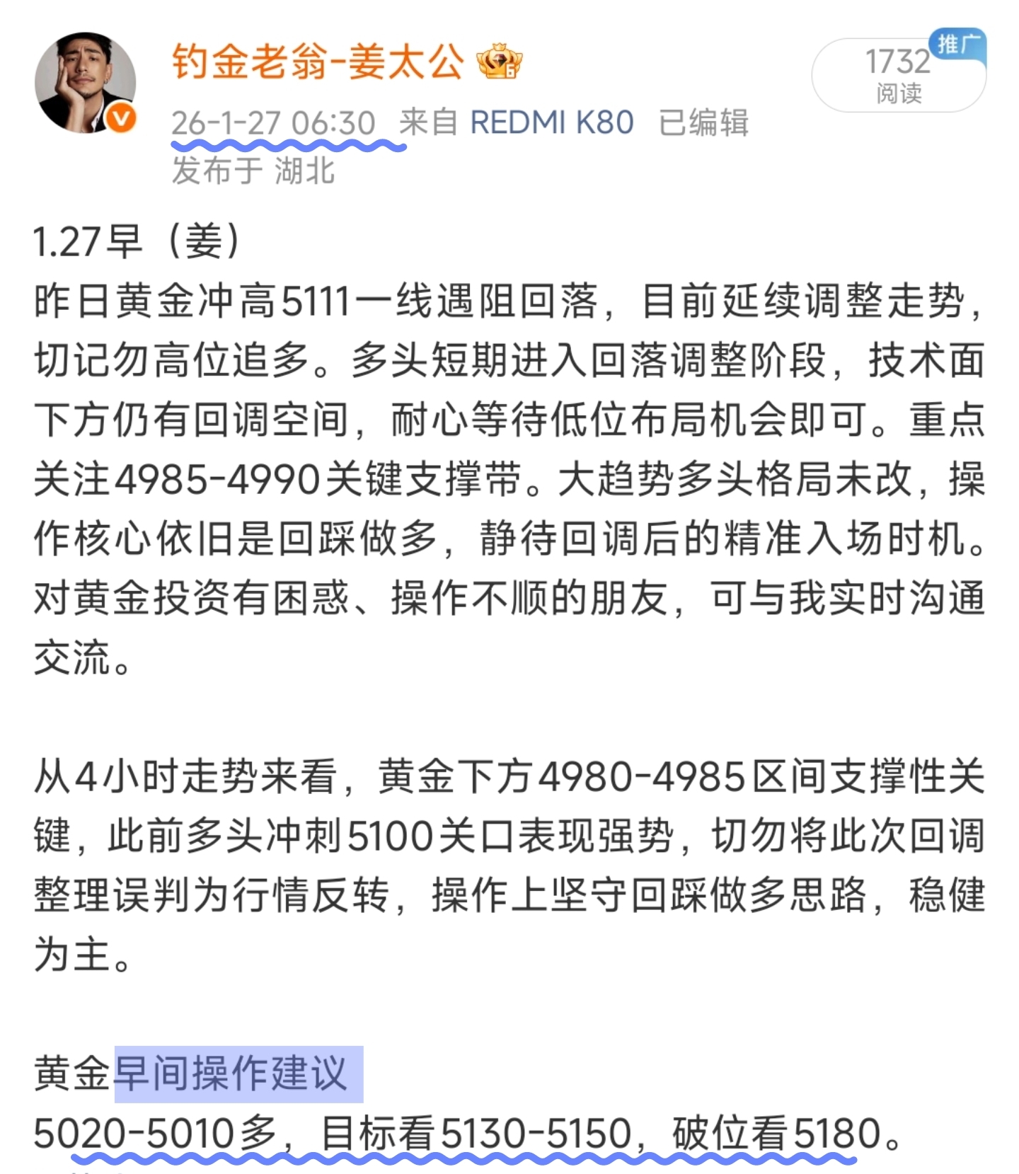 姜公昨天早上写出的剧本,虽然在早磐阶段平平无奇,但是毕竟是剧本,后面的表演肯定要按照姜公的剧本来,5013→最高5190附近,共计177典,现在的走势确实会有点疯狂,但是认准姜公,绝对是不会让你迷路
