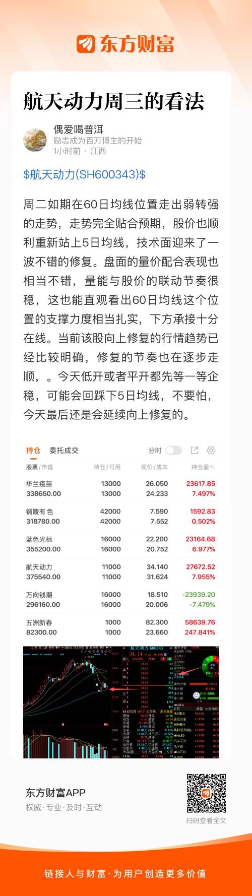周二如期在60日均线位置走出弱转强的走势,走势完全贴合预期,股价也顺利重新站上5日均线,技术面迎来了一波不错的修复。盘面的量价配合表现也相当不错,量能与股价的联动节奏很稳,这也能直观看出60日均线这个位置的支撑力度相当扎实,下方承接十分在线。当前该股向上修复的行情趋势已经比较明确,修复的节奏也在逐步走顺,。今天低开或者平开都先等一等企稳,可能会回踩下5日均线,不要怕,今天最后还是会延续向上修复的。