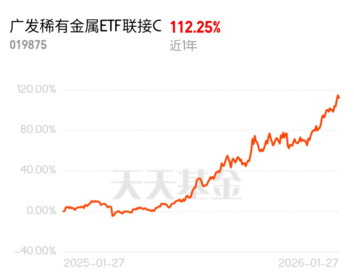 #2025超额关键词,2025超额关键词# 广发中证稀有金属ETF联接C我准续拿稳,近一年好歹112%,还有广发上海金也买了,况且我觉得稀有金属这波要从周期品变成战略资产了。还有以前看供需,现在看地缘政治和供应链安全。价值重估一旦开始,逻辑就不会短$广发稀有金属ETF联接C$ $广发稀有金属ETF联接C$