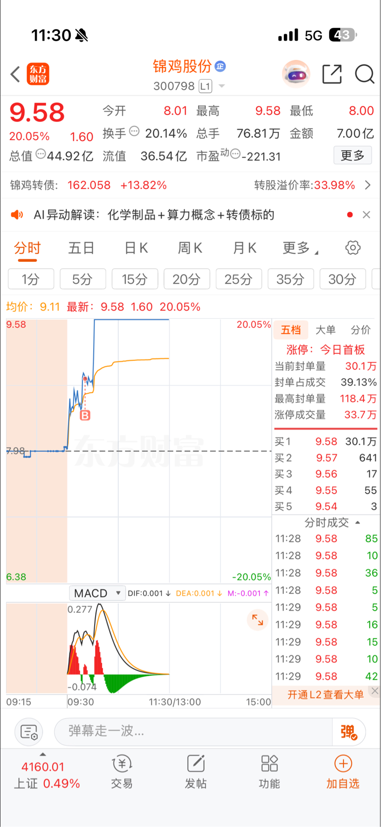 今天机会不少,看来大盘选择向上,下午证券能再助一下力就完美了
