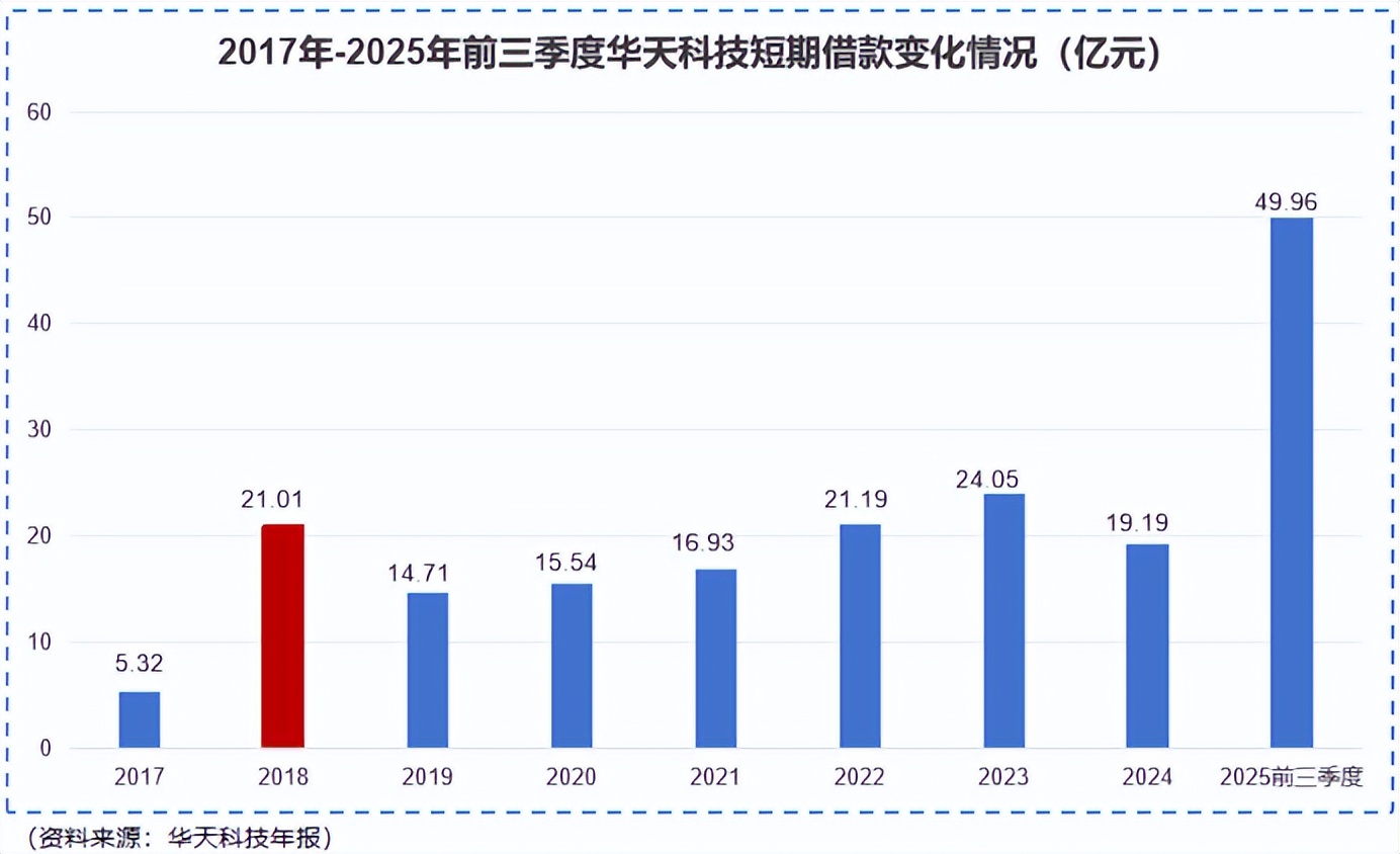 在随后的 2018 - 2024 年期间,华天科技的短期借款总额一直维持在 20 亿元左右,仿佛进入了一个相对平稳的 “平台期”。这段时间里,公司努力优化资金结构,加强资金管理,通过合理安排资金使用,维持了短期借款的相对稳定。然而,这种平稳在 2025 年前三季度被彻底打破。数据显示,2025 年前三季度,华天科技的短期借款飙升至 49.96 亿元,同比增幅高达 160.27%,占总资产的比重也从之前的 8.44% 上升至 15.05%,足足上升了 6.61 个百分点。