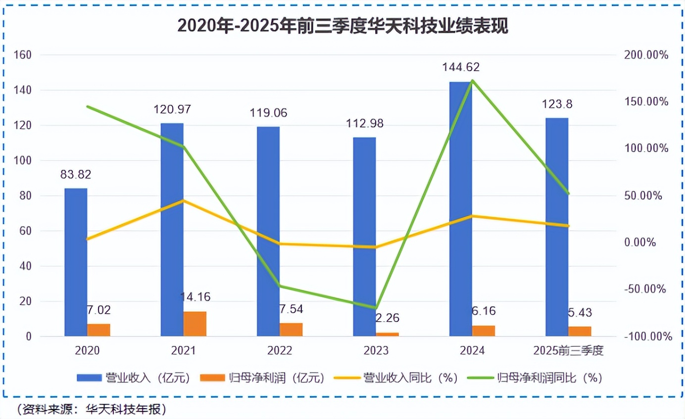 在 2020 - 2025 年前三季度这段关键时期,华天科技的营收表现犹如一艘在波涛汹涌的市场海洋中稳健航行的巨轮,始终保持着相对稳定的态势。公司营收始终维持在 120 - 140 亿元区间,展现出了强大的市场韧性和抗风险能力。2025 年前三季度,华天科技实现营业收入 123.8 亿元,同比增长 17.55%,这一成绩在行业内堪称亮眼。其中,第三季度单季营收表现更为出色,达到 46.0 亿元,同比增幅进一步提升至 20.63%,呈现出强劲的增长势头。