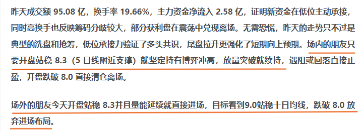 今天利欧开盘直接站稳8.3附近支撑 ,符合早上的预判,我直接按策略布局进场,距离9.0仅一步之遥,明天依然看好上行。