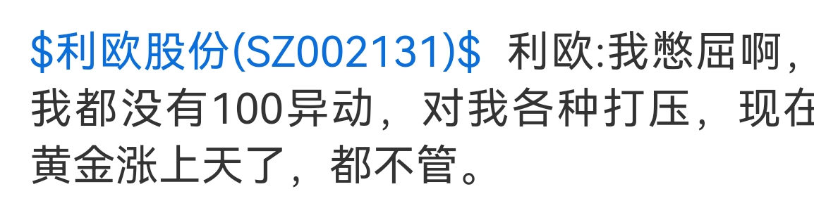 利欧太憋屈了,黄金涨疯了。