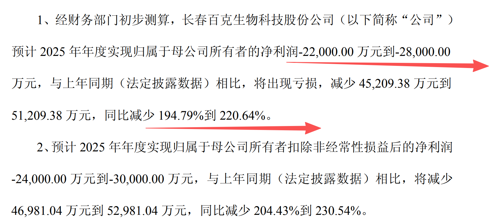 百克生物,2025年公司的净利润下滑195%到221%,净亏损了2.2亿到2.8亿元。