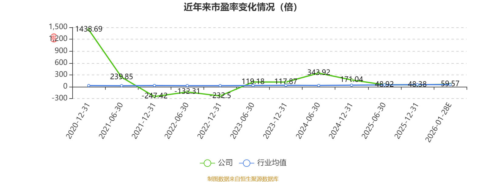 市盈率、市净率为负时,不显示当期分位数,会导致折线图中断。