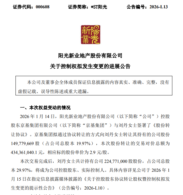 近期,新实控人刘丹以总计约6.15亿元的对价入主$*ST阳光(SZ000608)$,为市场注入了强烈的“重组保壳”预期,引发了二级市场显著的短期交易异动。然而,这一资本运作并未解决公司实质性问题,市场短期情绪与公司长期基本面的严重背离,构成了当前最主要的风险特征,投资者面临极高不确定性。