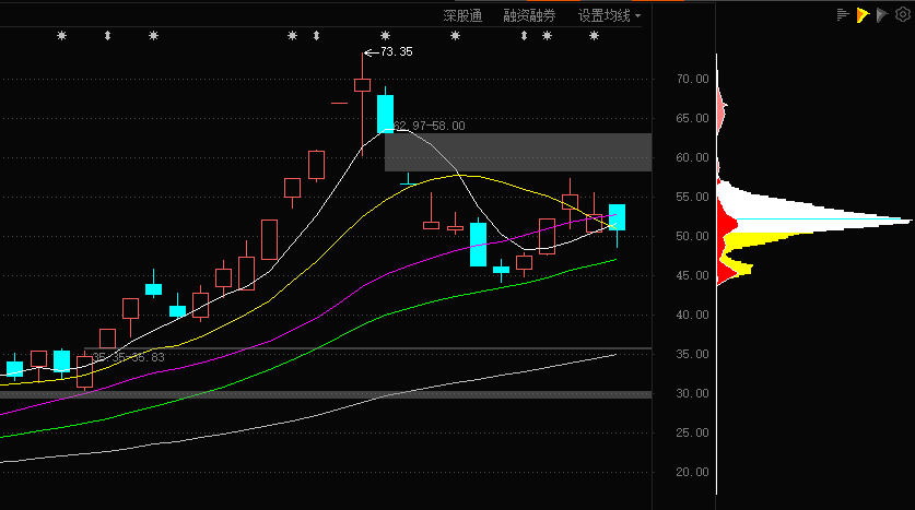 通宇通讯:今日该股早盘高开后受大盘快速下行影响同步回落,在48.6左右位置止跌企稳,随后呈现震荡上行态势。午后14:20左右紫金进场推动股架快速拉升至53.3左右位置但随即遭遇抛压打压后续震荡下行,最终收于50.7位置。从当前走势来看,50位置为关键支撑位若该位置不跌破,我将继续持有。