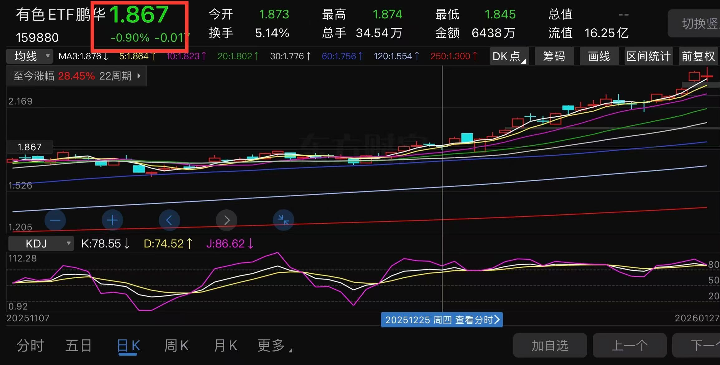 今天挂1.222没到,很可惜。