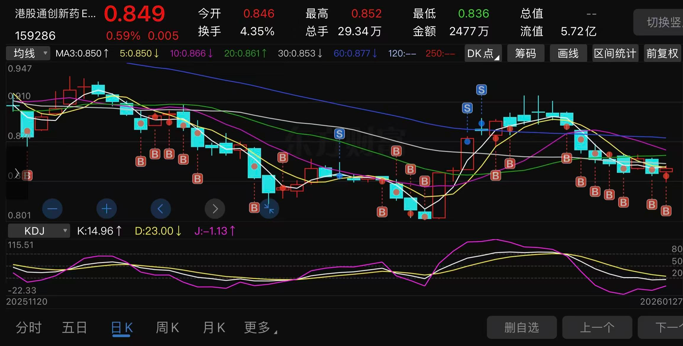 红色箭头位置没有买到,近期参考30日线1.002继续低吸。