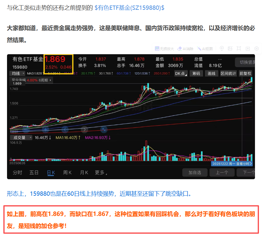 突然想到之前文章分享过的目标$有色ETF鹏华(SZ159880)$