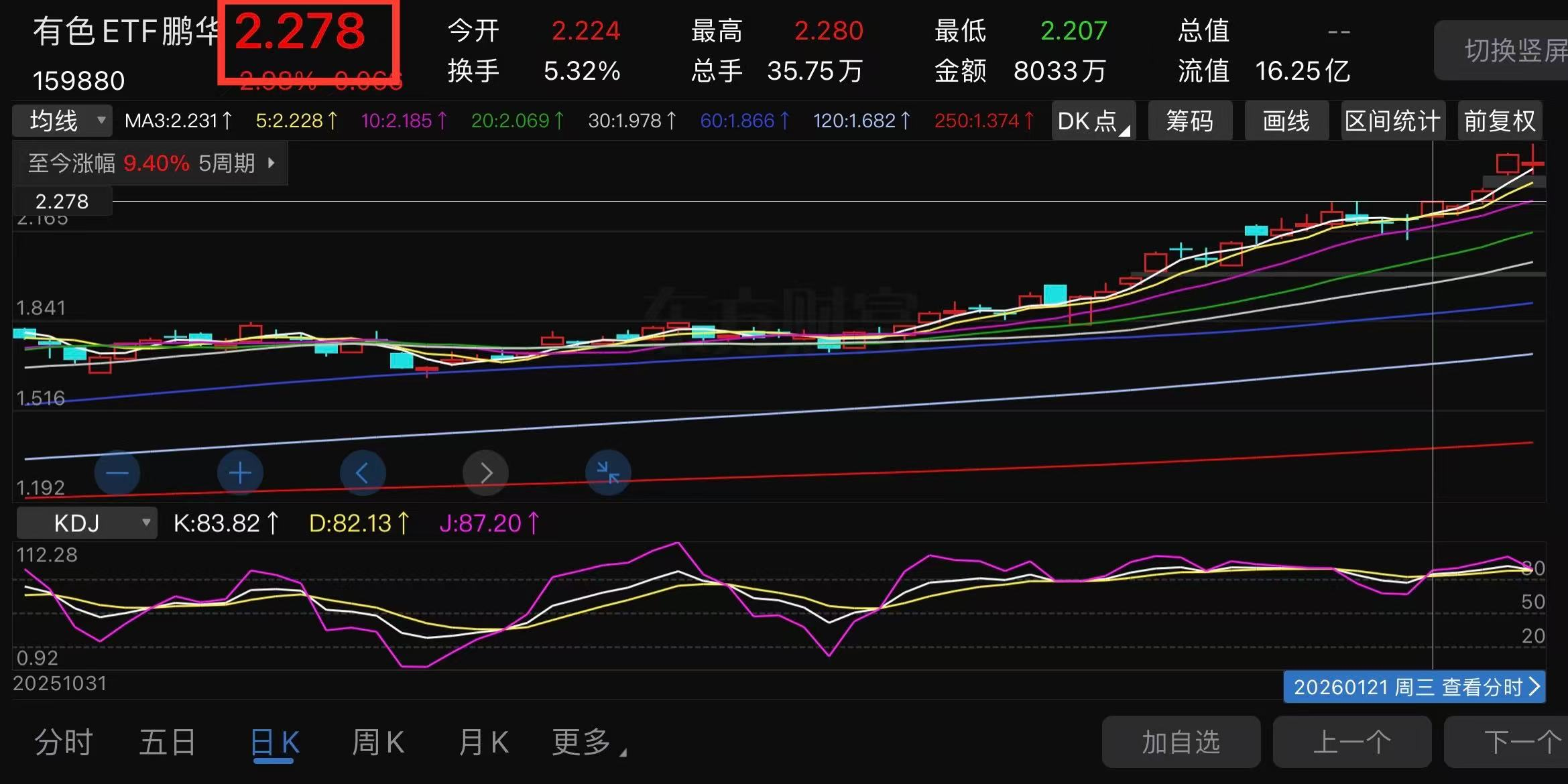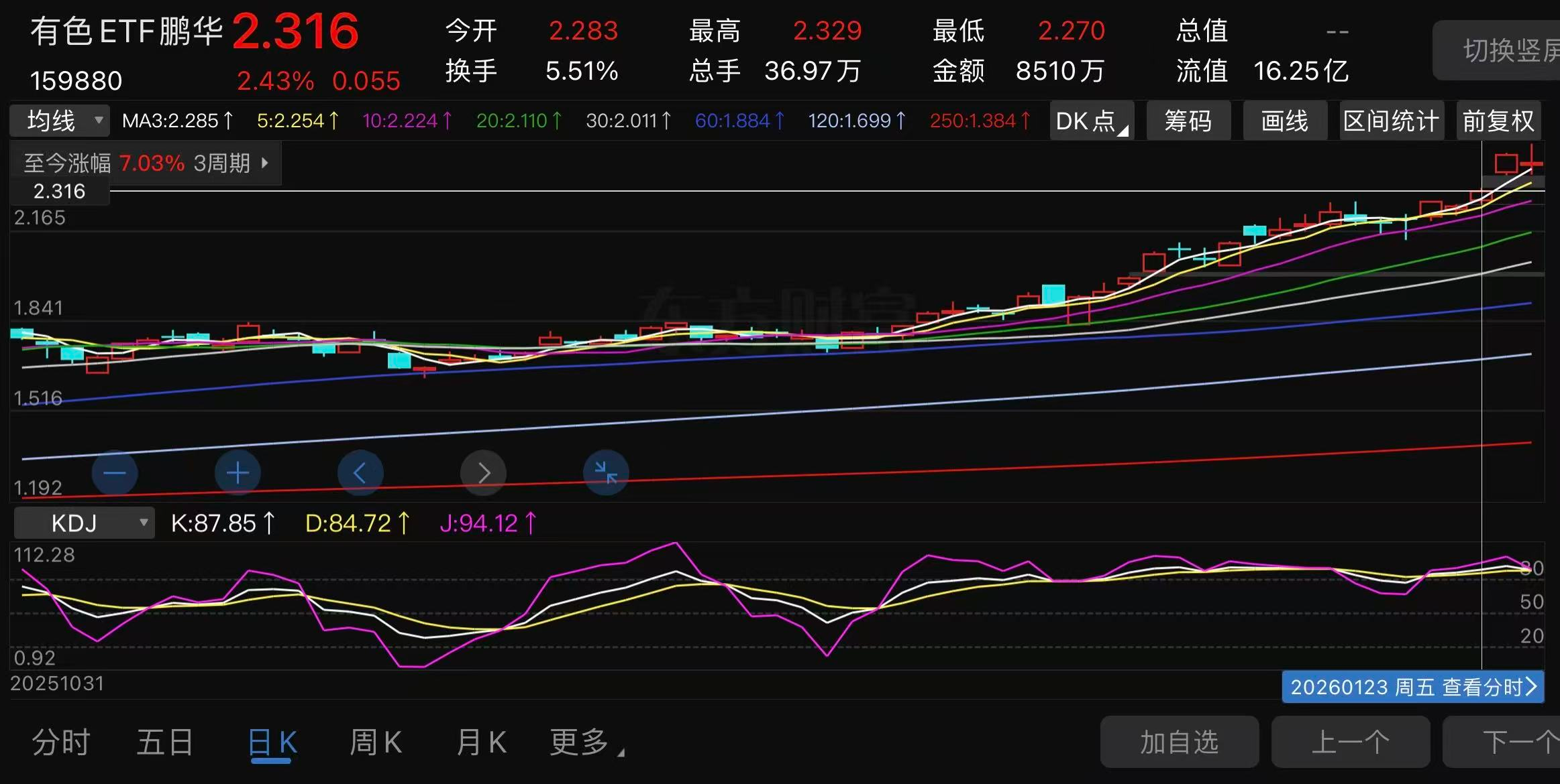 综上所述,关注有色金属-ETF特别是159880的朋友,注意近期2.278~2.316的短线低吸机会。