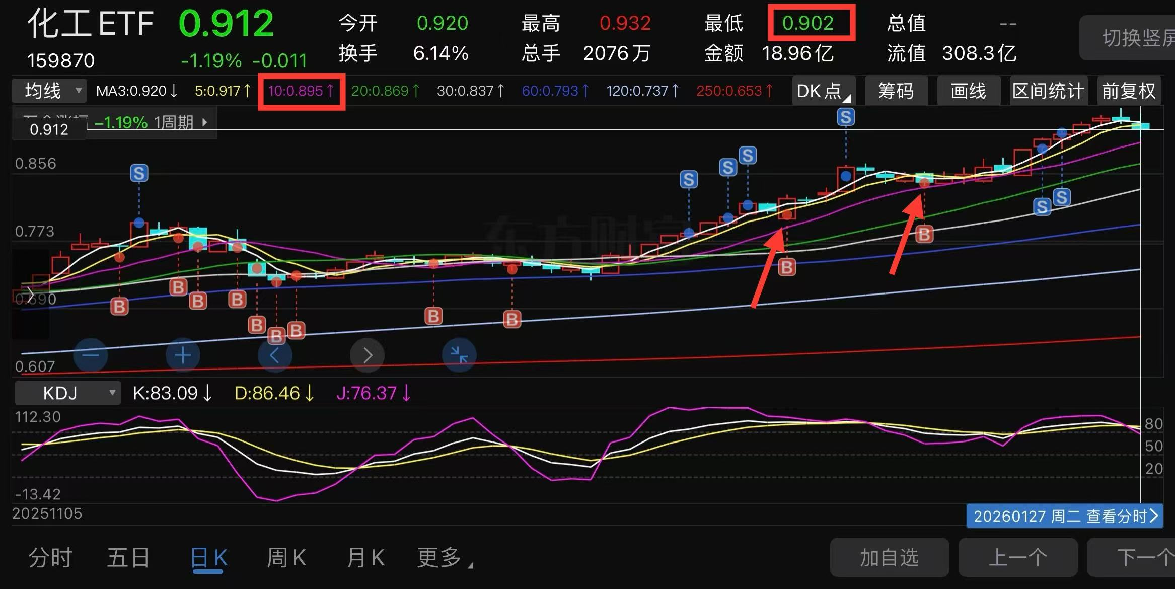 之前两次加仓都在10日线附近,目前10日线在0.895,而周二最低0.902与之非常接近!