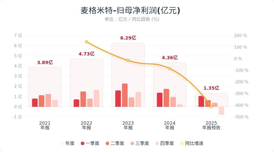 麦格米特(002851.SZ)公告称,预计2025年归属于上市公司股东的净利润为1.20亿元-1.50亿元,比上年同期下降65.61%-72.48%。业绩变动主要系公司持续加大AI电源等新兴领域研发投入及海外、杭州基地建设导致管理费用增加,叠加部分行业成本压力致毛利率下滑,以及汇率波动引发较大汇兑损失。注:Q3净利润0.39亿,据此计算,预计Q4净亏损0.63亿至亏损0.93亿。第四季度净利润分析师一致预测是1.72亿,Q4业绩低于预期。