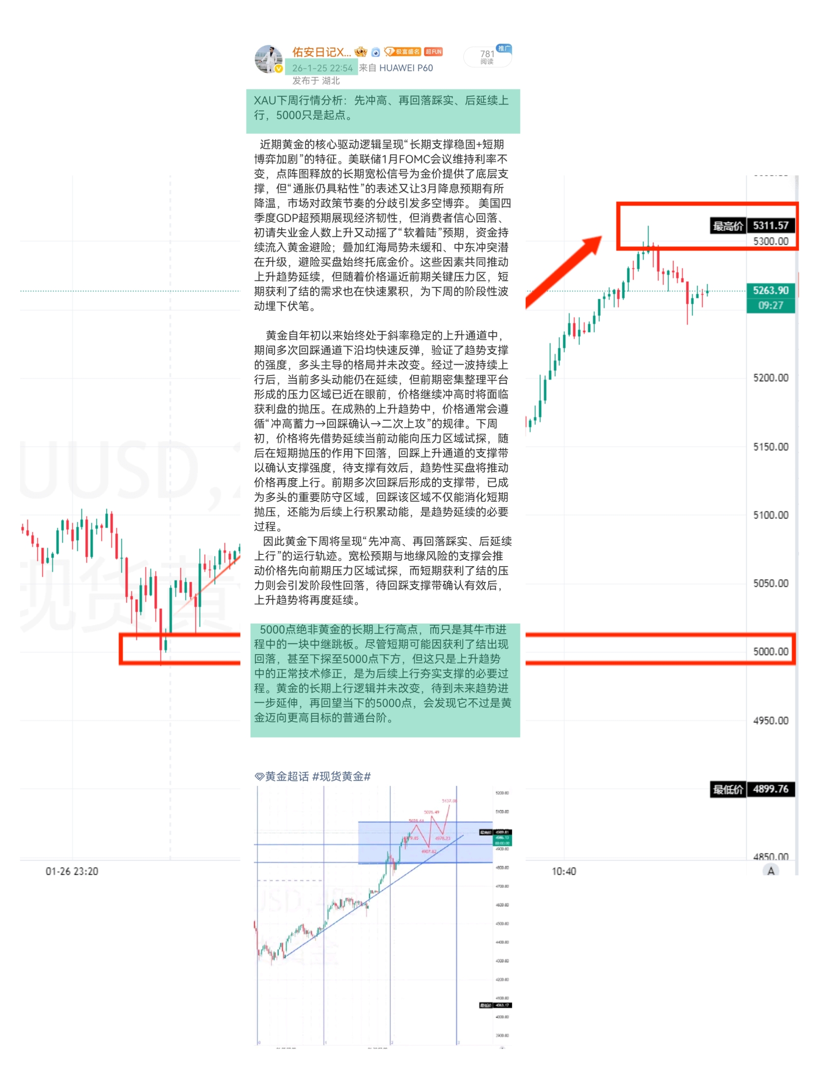 佑安说过5000绝非终点,这只是牛市征程的中继跳板,多头趋势的韧性正在持续验证中,后续的回踩都只是蓄力,黄金仍有望向更高目标发起冲击。