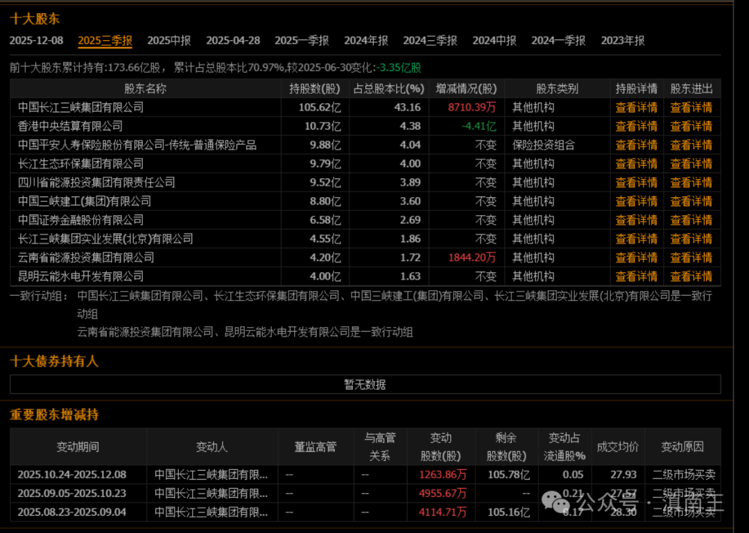 分红上,过去十年一直在慢慢增加,最近一个年度,分红10送9.43元,按照现在算,2025年全年的分红会超过10送10元!也就是你有一股长江电力就有1元的分红,拥有越多,分的就越多! 第四、慢慢收藏!