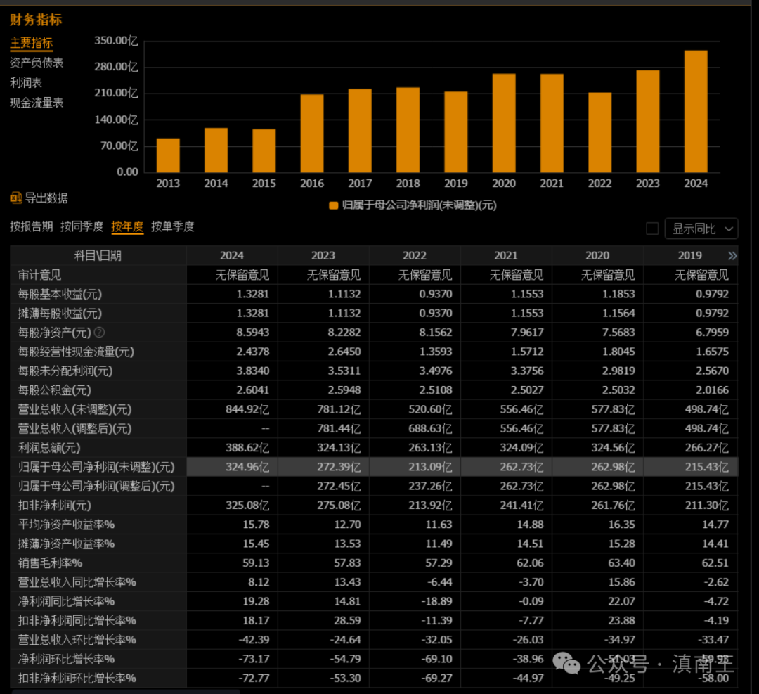 大家看,长江电力从十年前的110多亿的净利润,到2024年净利润320亿,还是很不错的,以后稳住300多亿是问题不大的!