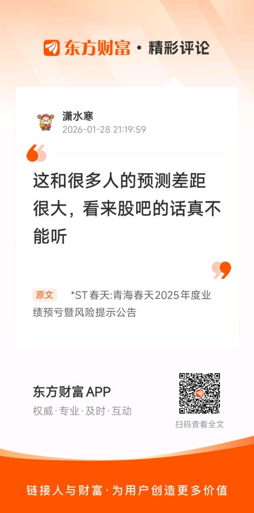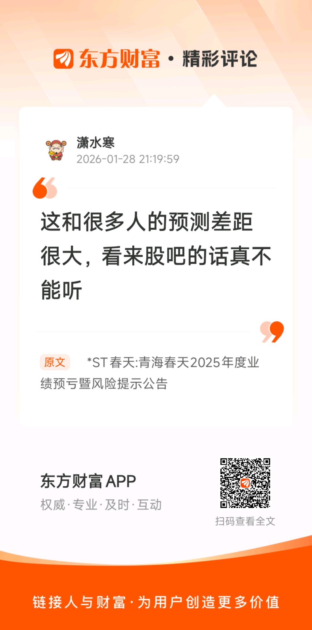 如预付投资款无法收回,年审会计师将出具无法表示意见的审计报告,公司股票将被终止上市。年审会计师出具的专项说明显示,“我们注意到,青海春天向宜宾听花预付的投资款截至 2025 年 11 月已到期,经双方协商,该投资款已转为借款并收取利息。在此,需着重指出的是,若截至 2025 年度审计报告出具前,此笔由投资款转化而来的借款在回收方面未能取得实质性进展,这将极大影响我们对该笔借款可回收性的专业判断。基于审计准则要求,在此种情形下,我们预计将对青海春天的财务报表发表无法表示意见的审计报告”。