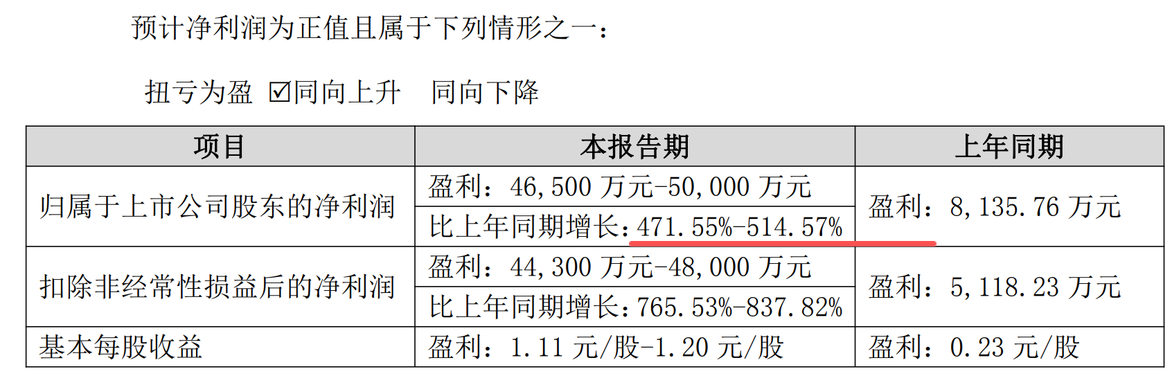 利民股份,这个股票2025年净利润增长472%到514%,净利润达到4.65亿到5亿元。