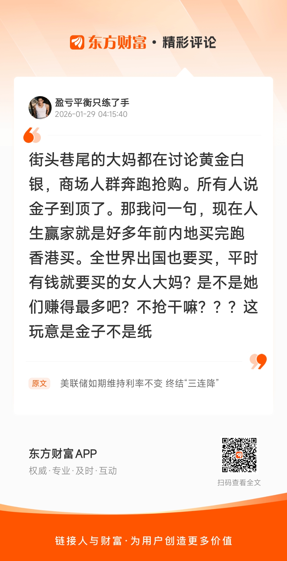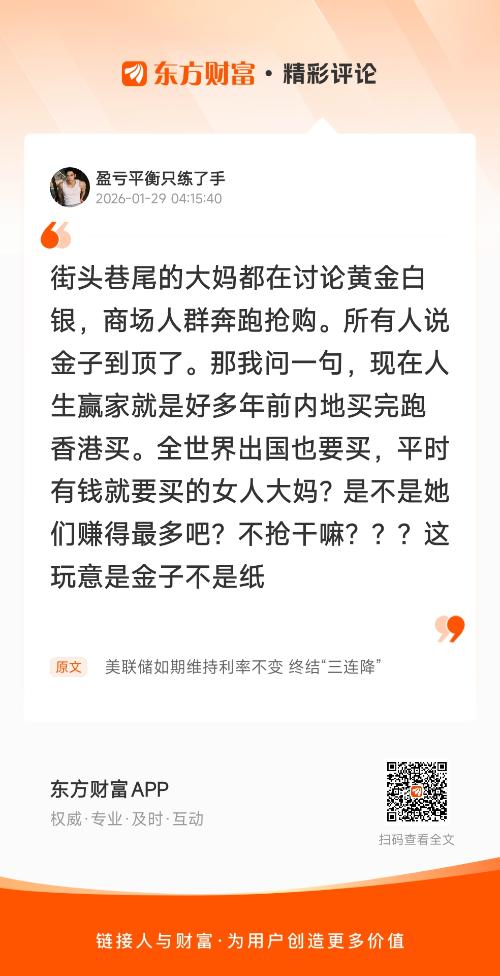 北京时间周四(1月29日)凌晨,美联储结束为期两天的货币政策会议,宣布将联邦基金利率目标区间维持在3.5%至3.75%之间,符合市场普遍预期。