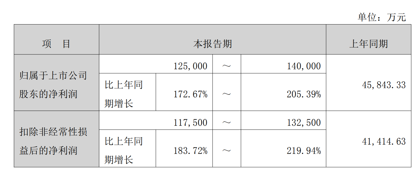 长川科技,2025年净利润增长173%到205%,净利润达到12.5亿到14亿元。