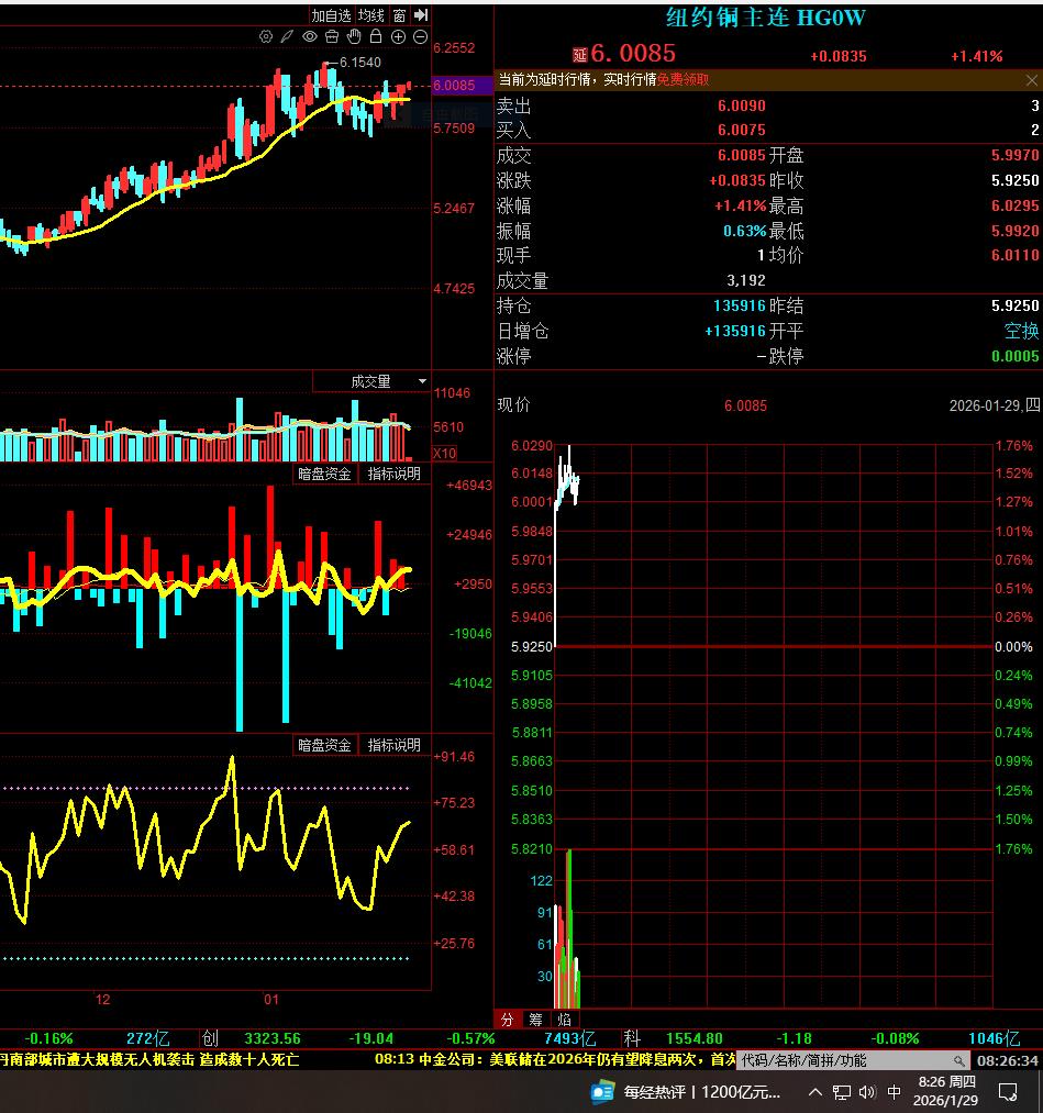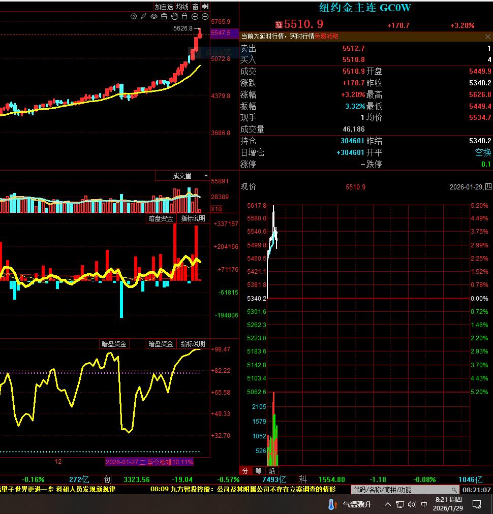 0129星期四 早盘再迎好消息 美黄金 银 铜 原油继续上升