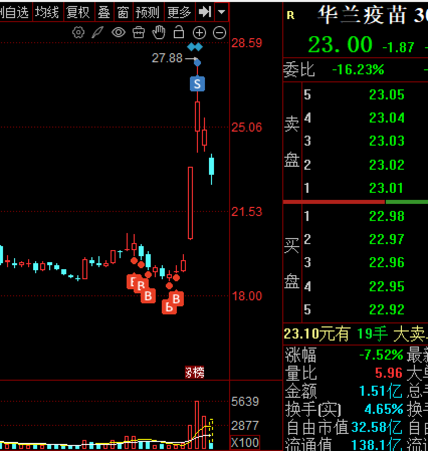 $华兰疫苗(SZ301207)$ 走的及时,两天跌下来20个点了