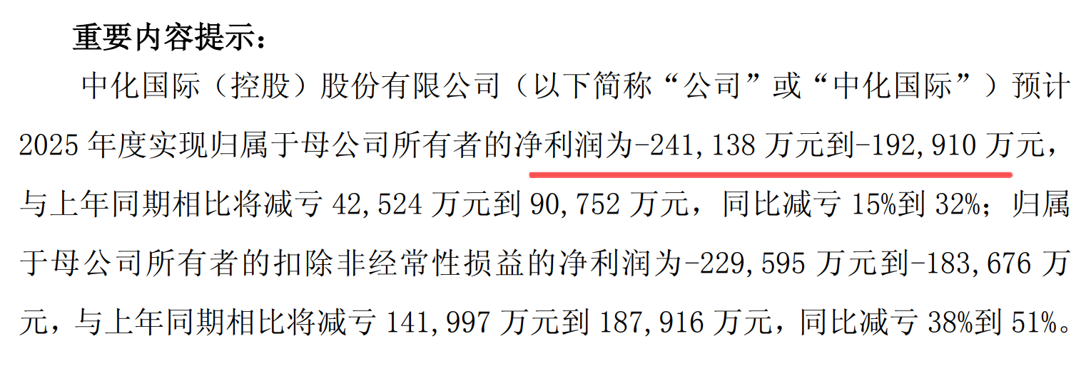 中化国际,2025年公司净亏损了19.29亿到24亿元,
