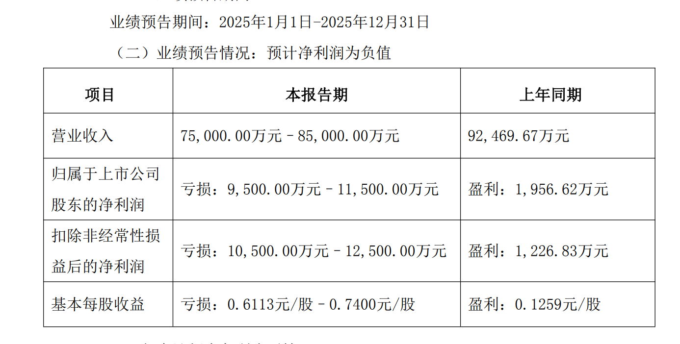 中天火箭,这个股票2025年收入下滑到7.5亿到8.5亿,净亏损扩大到1亿元左右。