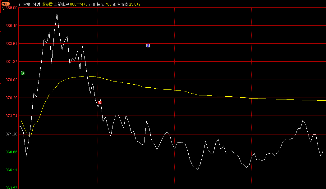 我预判江波龙的走势会按照前期高点366、377继续突破至388。结果,今天早盘该股下杀后迅速拉升至389,随后又重复之前的走势,杀跌至366。我认为,下午股价应该会拉起来。380卖出后继续加仓做T