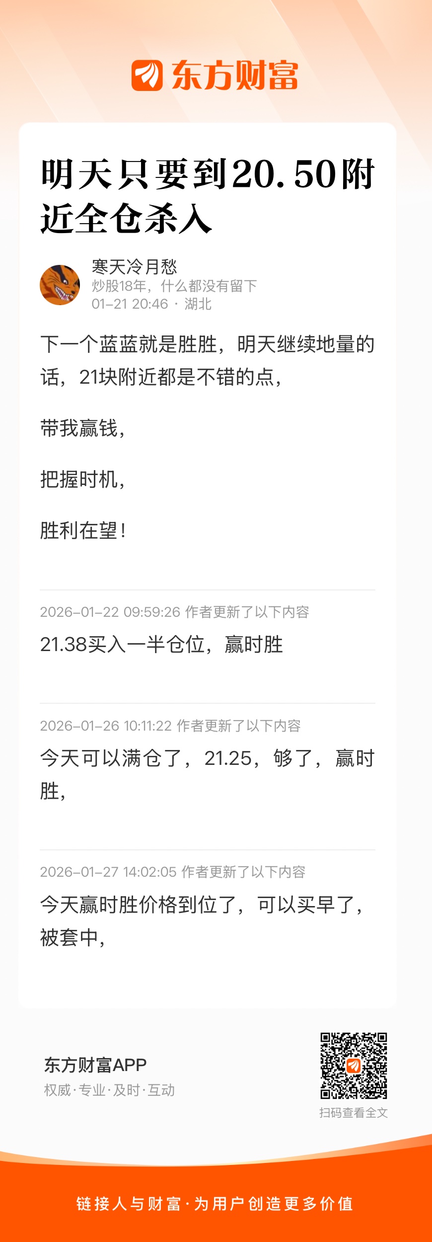 温馨提示: 1.根据《证券法》规定,禁止编造、传播虚假信息或者误导性信息,扰乱证券市场;2.用户在本社区发表的所有资料、言论等仅代表个人观点,与本网站立场无关,不对您构成任何投资建议。用户应基于自己的独立判断,自行决定证券投资并承担相应风险。《东方财富社区管理规定》
