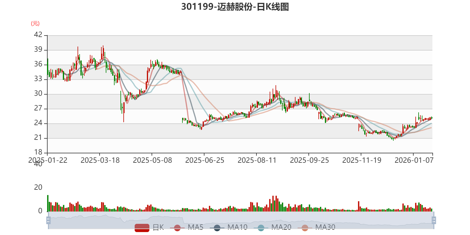中证智能财讯迈赫股份(301199)1月22日晚间披露2025年度业绩预告,预计2025年归母净利润1.03亿元至1.33亿元,同比增长19.58%-54.76%;扣非净利润预计8770万元至1.14亿元,同比增长65.2%-113.81%。以1月22日收盘价计算,迈赫股份目前市盈率(TTM)约为35.07倍-45.38倍,市净率(LF)约2.44倍,市销率(TTM)约4.46倍。