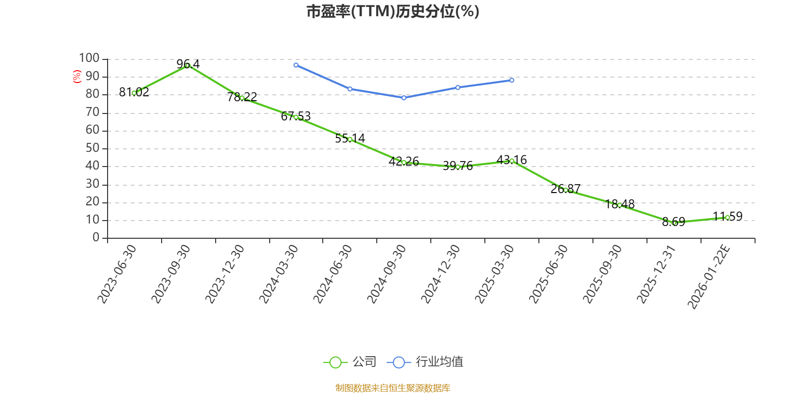 以本次披露业绩预告均值计算,公司近年市盈率(TTM)图如下所示: