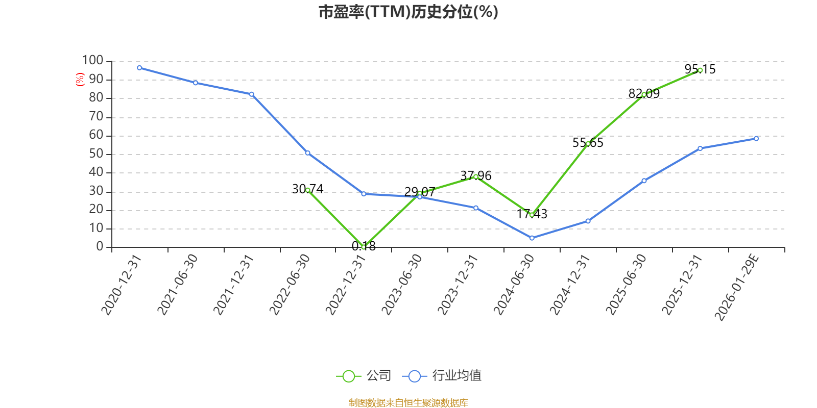 市盈率、市净率为负时,不显示当期分位数,会导致折线图中断。